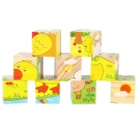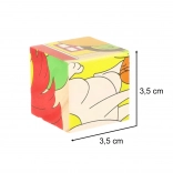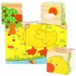 Każda kostka ozdobiona jest kolorowymi ilustracjami z farmy, które stymulują dziecięcą wyobraźnię i percepcję wzrokową.