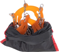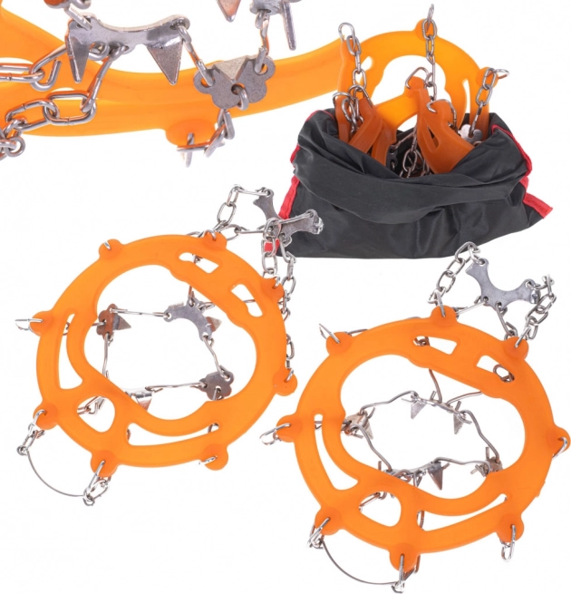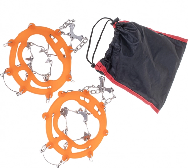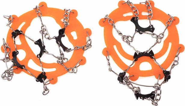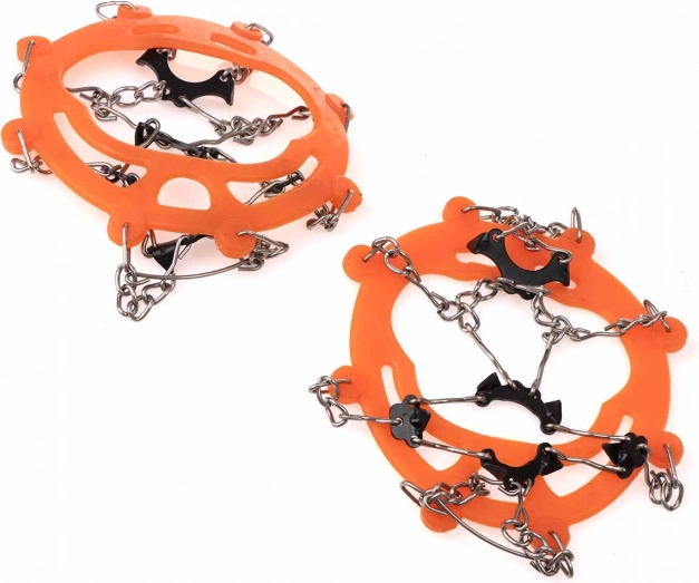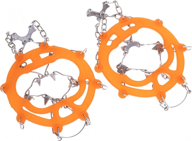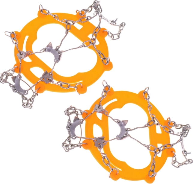Antypoślizgowa konstrukcja oferuje doskonałą trakcję. Metalowe kolce i wytrzymały gumowy stelaż zapewniają, że pozostaniesz bezpieczny na nogach.