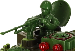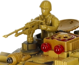 Gąsienicowe podwozie z miękkimi gumowymi gąsienicami zapewnia dobrą trakcję, obrotowa wieża obraca się aż o 300°, a działko podczerwieni umożliwia bezpieczne strzały na krótkim dystansie. Efektowne oświetlenie LED oraz bogate efekty dźwiękowe silnika, działa i karabinu maszynowego wzmacniają atmosferę prawdziwego pola bitwy. Wysokiej jakości plastik i staranne wykonanie wytrzymają miesiące zabawy.
