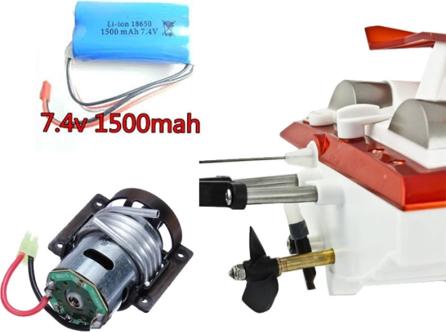 - Łódź FT009, aparatura 2,4 GHz, akumulator, ładowarka USB, stojak, zapasowa śruba