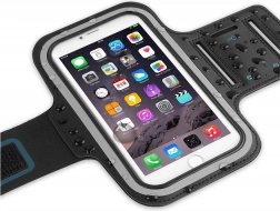 Regulowany pasek na rzep zapewnia stabilne trzymanie na ramieniu o obwodzie ok. 27–40 cm. Miękka pianka neoprenowa dopasowuje się do skóry, ogranicza ślizganie i zwiększa komfort podczas dłuższego noszenia. Praktyczne wyjścia na kabel słuchawek pozwalają słuchać muzyki nawet podczas intensywnego treningu.