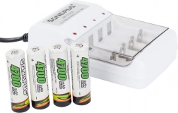 Ta wysokiej jakości ładowarka jest idealna do codziennego ładowania baterii typu AA i AAA. Charakteryzuje się automatyczną regulacją prądu, która zapewnia bezpieczeństwo Twojej domowej elektroniki. Ładowarka zawiera jasne LED wskaźniki, które pokazują proces ładowania.