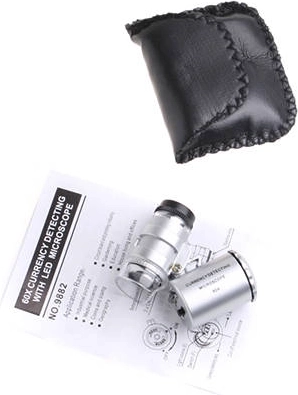 Mikroskop ma oświetlenie z 2 diodami LED dla optymalnego wyświetlania obserwowanych obiektów oraz diodę UV do sprawdzania autentyczności banknotów. W zestawie znajduje się praktyczne etui do przenoszenia.