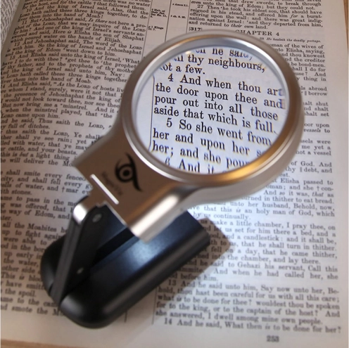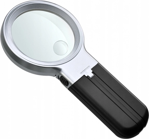 Ta uniwersalna ręczna lupa to świetna pomoc do codziennego czytania, szycia i precyzyjnej kontroli detali na znaczkach oraz monetach. 3× powiększenie w połączeniu z soczewką 60 mm gwarantuje ostry i czytelny obraz bez wysiłku dla oczu. Dwie diody LED efektywnie doświetlają obserwowany obszar, dzięki czemu doskonale sprawdzi się także w gorszych warunkach oświetleniowych.