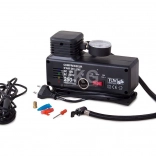 - Kompresor, przewód 12 V do zapalniczki, przewód zasilający 230 V, manometr, zestaw końcówek, oryginalne opakowanie
