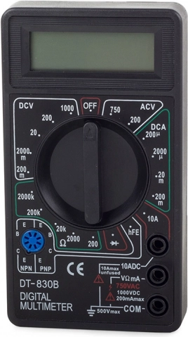 Kompaktowy i niezawodny multimetr oparty na sprawdzonej konstrukcji DT‑830B pozwala kontrolować napięcia DC/AC, prąd stały oraz rezystancję. Czytelny wyświetlacz LCD ułatwia odczyt wartości, a automatyczne wyłączanie oszczędza baterię, dzięki czemu przyrząd jest zawsze gotowy do pracy.