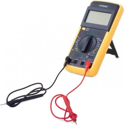 - W skład opakowania wchodzi: multimetr, zestaw przewodów pomiarowych, sonda pomiarowa, bateria 9V i oryginalne opakowanie