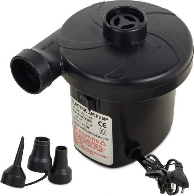 Elektryczna pompa jest kompaktowym i praktycznym rozwiązaniem do pompowania powietrza. Idealna do pompowania lub wypuszczania z przedmiotów takich jak piłki, materace, dmuchane poduszki czy pontony.