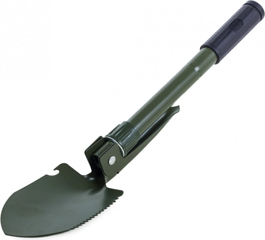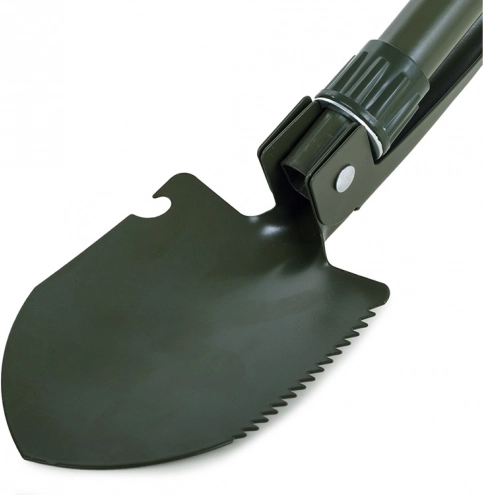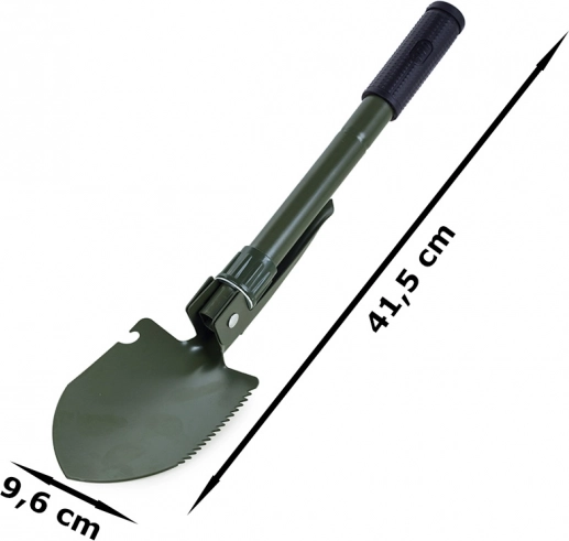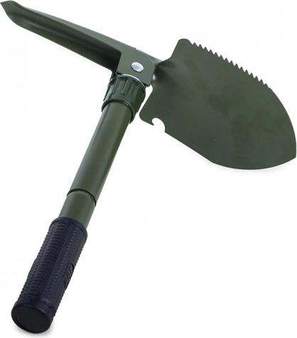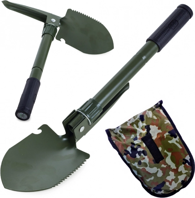 Ta składana wielofunkcyjna łopatka łączy łopatę, kilof, piłkę i otwieracz w jednym kompaktowym narzędziu. Wykonana z wysokiej jakości stali, która wytrzymuje wymagające warunki w terenie i podczas codziennego użytkowania. Antypoślizgowy uchwyt zapewnia pewny chwyt i bezpieczną pracę.
