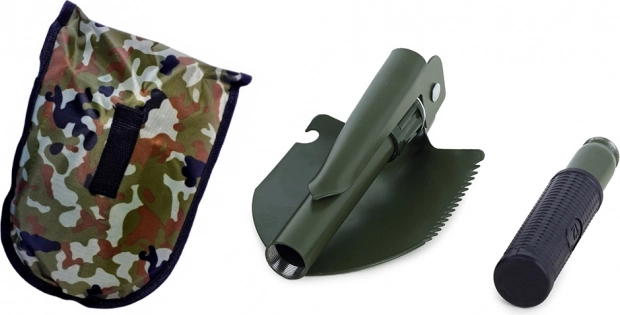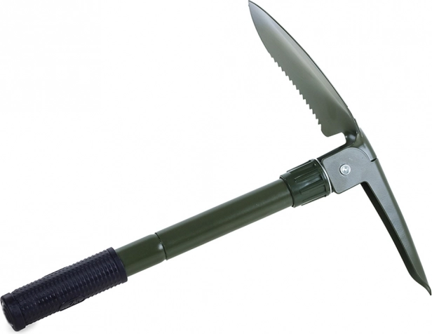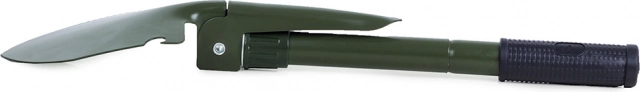 Jedno wyposażenie do wielu zadań: łopata/ostrze, kilof, piłka i otwieracz. Praktyczne rozwiązanie do pracy w terenie i w ogrodzie.