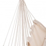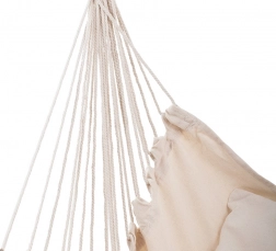 Stylowy fotel hamakowy w brazylijskim stylu zamieni balkon, taras i salon w oazę spokoju. Wytrzymała tkanina z grubej bawełny z domieszką poliestru jest przyjemna w dotyku, oddychająca i jednocześnie mocna. Szeroka drewniana belka utrzymuje siedzisko otwarte, zwiększa stabilność i zapobiega skręcaniu.