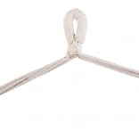 Mocna pleciona lina z centralną pętlą umożliwia szybki montaż na haku lub stojaku i równomiernie rozkłada obciążenie.