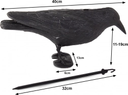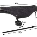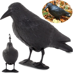 Praktyczna figurka kruka wykorzystuje naturalny strach mniejszych ptaków i gryzoni przed drapieżnikami. Dzięki wiernym wymiarom i stonowanemu wykonaniu wygląda naturalnie i dyskretnie. Świetnie sprawdzi się do ochrony rabat, drzew owocowych, tarasów i balkonów przed gołębiami, szpakami i innymi nieproszonymi gośćmi.