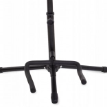 Uniwersalny stojak na gitarę do gitar klasycznych, akustycznych, elektrycznych i basowych. Jest lekki, stabilny i ma zabezpieczenie szyjki, gumowane podpórki oraz antypoślizgowe stopki. Regulowana wysokość i wytrzymała aluminiowa konstrukcja zapewniają pewne przechowywanie instrumentu w domu i na scenie.