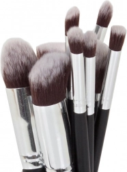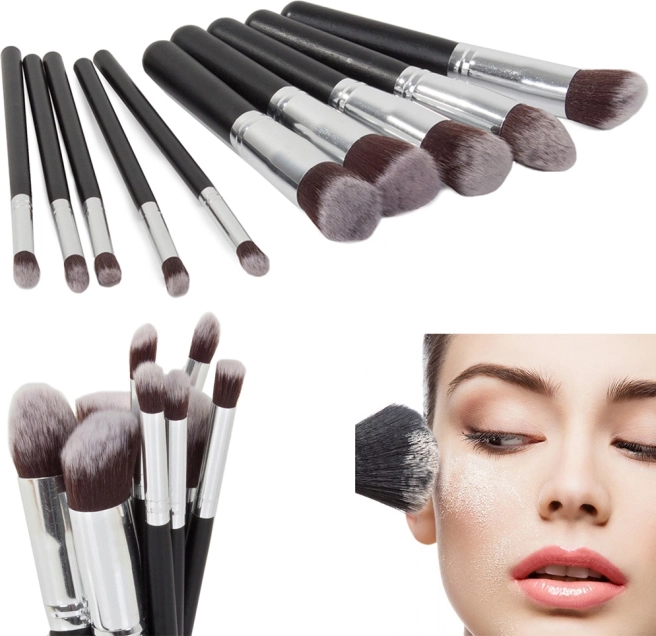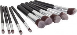 Ten uniwersalny zestaw obejmuje 5 większych pędzli do bazy, makijażu, pudru czy różu oraz 5 mniejszych pędzli do precyzyjnej i punktowej aplikacji korektora, rozświetlacza i cieni do powiek. Dzięki miękkiemu, gęstemu i równomiernie przyciętemu włosiu uzyskasz gładki i naturalny efekt bez smug.