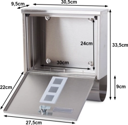 Ta skrzynka pocztowa zaprojektowana jest z myślą o wytrzymałości i długowieczności. Dzięki nierdzewnej stali pozostaje w doskonałym stanie przez wiele lat. Zadaszone wejście zapewnia ochronę listów i ulotek przed niesprzyjającą pogodą.<p>