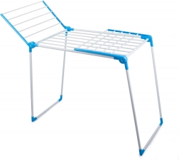 Duża suszarka na pranie oferuje miejsce na nawet 13 metrów prania dzięki solidnej konstrukcji, odpornej na przewrócenie. Wyposażona w 2 niezależne skrzydła z 5 prętami każde oraz główną półkę z 8 prętami. Dzięki emaliowanym i gładkim prętom pranie się nie ześlizguje i rozkłada równomiernie.