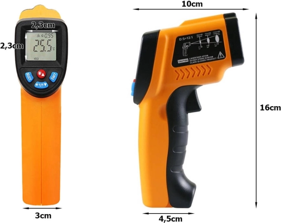 Bezkontaktowy termometr IR idealnie sprawdzi się w branży motoryzacyjnej, inżynieryjnej, budowlanej, chłodniczej oraz w gastronomii i przemyśle spożywczym. Laserowy celownik wskazuje dokładny punkt pomiaru, a szybka reakcja i podświetlenie ekranu zapewniają wygodę użycia w warsztacie i w terenie.