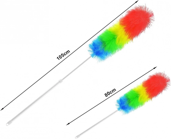 - Teleskopowa rączka umożliwia łatwe przedłużenie długości szczotki do sprzątania w miejscach wysoko położonych, takich jak lampy i żyrandole.