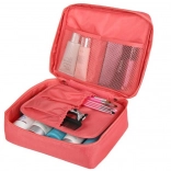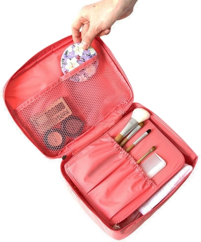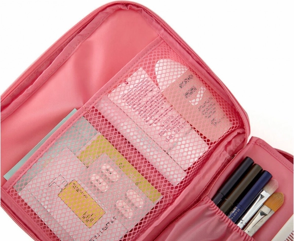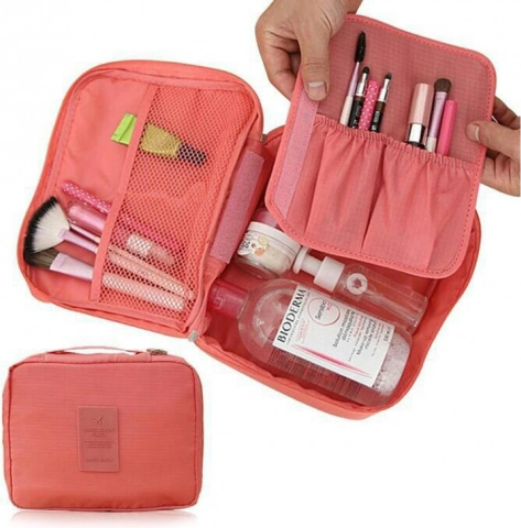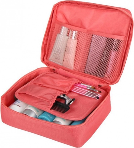 Ta praktyczna kosmetyczna torba oferuje przestronną główną przegródkę wraz z dwiema siatkowymi kieszeniami. Dzielona przegroda na rzep pozwala zwiększyć pojemność. Idealna do podróży, ponieważ zajmuje minimalną ilość miejsca.