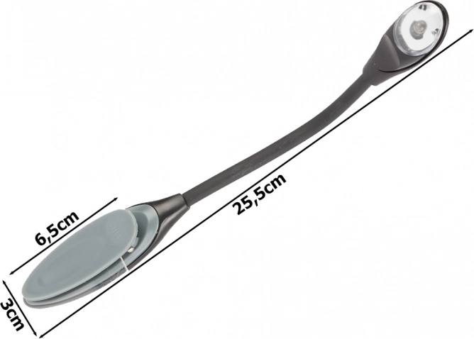 Elastyczne ramię umożliwia precyzyjne ustawienie kąta i wysokości oświetlenia. Wytrzymały klips z pewnym dociskiem mocuje lampkę do książki, półki, blatu stołu lub ramy łóżka. Dzięki zasilaniu 2× CR1220 lampka jest w pełni mobilna i gotowa do podróży.