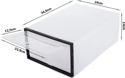 Wszechstronne pudełko na buty jest idealne do codziennego użytku i długoterminowego przechowywania. Dzięki przezroczystej klapce zawartość masz zawsze na oku, a otwory wentylacyjne zapewniają cyrkulację powietrza. Gdy go nie używasz, łatwo je złożysz na płasko.