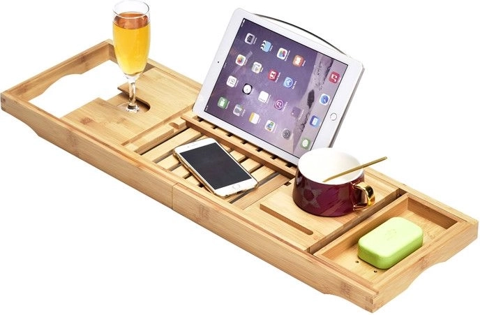 Ta regulowana bambusowa półka zamieni Twoją kąpiel w relaksujący rytuał. Stabilna, rozsuwana konstrukcja (70–103 cm) pewnie leży na większości wanien, a przemyślane przegródki utrzymują wszystko pod ręką – od tabletu i książki po kieliszek wina, mydło czy świeczkę. Naturalny bambus jest odporny na wilgoć, łatwy w czyszczeniu i świetnie pasuje do każdego stylu łazienki.