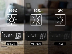 Wyświetlacz po chwili bezczynności przyciemnia się lub wyłącza, a obudzisz go klaśnięciem. Świetne dla niezakłóconego snu i niższego zużycia energii.