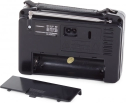 Rozszerzony odbiór pasm FM, AM, SW1 i SW2 obejmuje szerokie spektrum stacji. Teleskopowa antena zwiększa czułość i stabilność sygnału, więc łatwo dostroisz nawet dalsze nadajniki. Kompaktowe wymiary i praktyczny uchwyt ułatwiają przenoszenie.