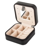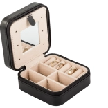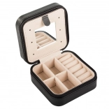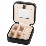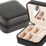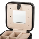 Podróżne pudełko na biżuterię z organizerem i lusterkiem, czarne, 10 × 10 × 5 cm