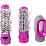 Koncentrator do szybkiego suszenia, płaska szczotka do wygładzania oraz okrągła szczotka do objętości i naturalnych loków. Prosta i szybka wymiana w kilka sekund.