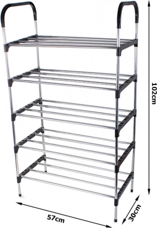 Ten uniwersalny stojak na buty oferuje pięć poziomów do przechowywania nawet 15 par obuwia lub innych praktycznych przedmiotów. Jest lekki, stabilny i idealny do każdego domu.