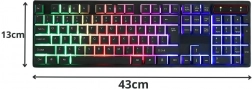 Stylowa klawiatura gamingowa w pełnym rozmiarze z blokiem numerycznym oferuje ciche klawisze membranowe, podświetlenie RGB oraz wygodne pisanie i granie przez długie godziny. Dzięki anti‑ghostingowi, odporności na zachlapania i prostemu podłączeniu USB plug & play jest idealna zarówno dla graczy, jak i do pracy biurowej.