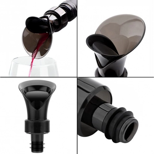 Wysokiej jakości wykonanie z trwałego plastiku i gumy pasuje do większości butelek o średnicy 20–24 mm. Minimalistyczny czarny design sprawdzi się w każdym domu i barze, ułatwiając serwowanie z profesjonalnym efektem.
