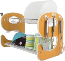 Praktyczna dwupoziomowa suszarka do naczyń z tacką ociekową utrzyma Twoją kuchnię w idealnym porządku. Oferuje stabilną konstrukcję, pojemność do 14 talerzy, 2 poziomy suszenia dla talerzy, misek i kubków oraz zawieszany organizer na sztućce z haczykami na akcesoria kuchenne. Połączenie metalu i wytrzymałego plastiku zapewnia długą żywotność i odporność na wilgoć.