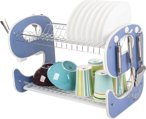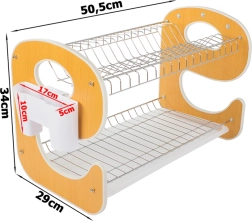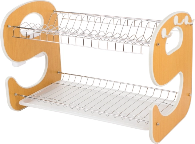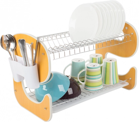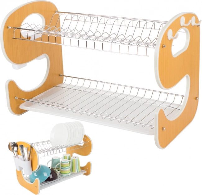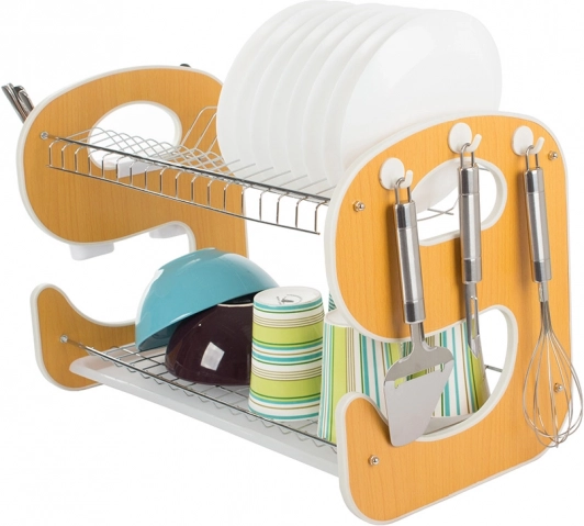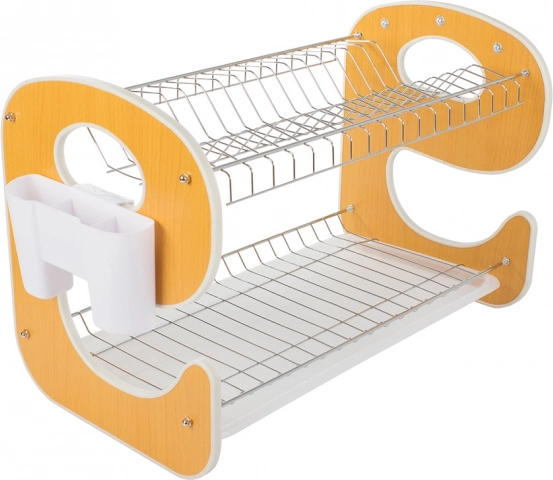 Elegancka i funkcjonalna dwupoziomowa suszarka do naczyń z wzornictwem w kształcie „E” stanie się stylowym i praktycznym pomocnikiem w Twojej kuchni. Tacka ociekowa zbiera wodę i chroni blat roboczy, a dwa poziomy efektywnie suszą talerze, miski, szklanki i kubki.