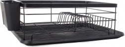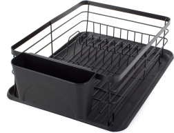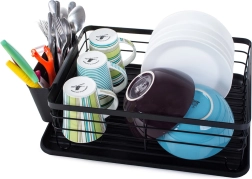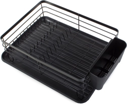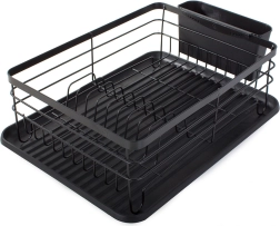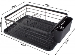 Praktyczny ociekacz do naczyń w eleganckim czarnym kolorze, który pomaga utrzymać porządek na blacie kuchennym. Oferuje dużą pojemność, miejsce na 11 talerzy, osobny organizer na sztućce oraz plastikową tackę ociekową, która chroni blat przed wodą. Wytrzymała metalowa konstrukcja z powłoką proszkową zapewnia długą żywotność i nowoczesny wygląd w loftowym stylu.