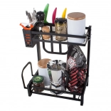 Ten dwuwarstwowy organizer kuchenny wykonany jest z wysokiej jakości metalu i oferuje odporność na wilgoć oraz stabilność dla cięższych przedmiotów.