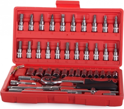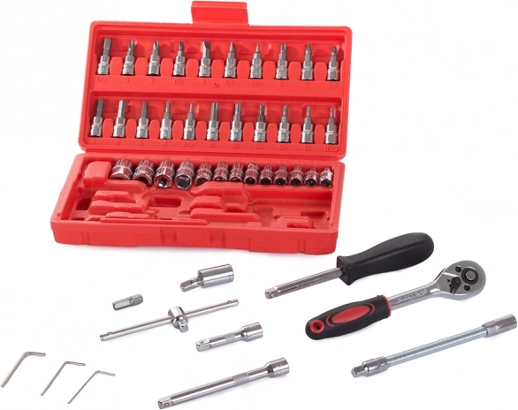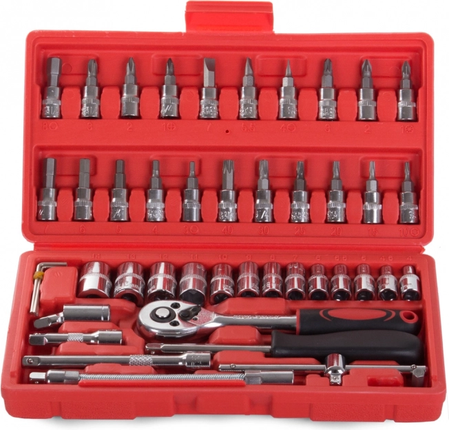 Odkryj uniwersalność i niezawodność tego 46‑elementowego zestawu narzędzi. Doskonały wybór dla majsterkowiczów i profesjonalistów, którzy potrzebują mieć zawsze pod ręką niezbędne klucze i bity.