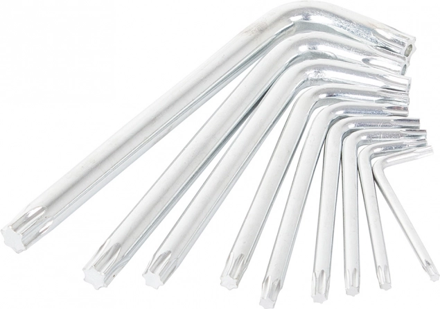 Zestaw kluczy imbusowych zapakowany w praktyczny plastikowy wieszak, wykonany z wysokiej jakości stali, która wyróżnia się odpornością i elastycznością. Idealny do trudno dostępnych miejsc dzięki uniwersalnym kluczom w kształcie litery L.