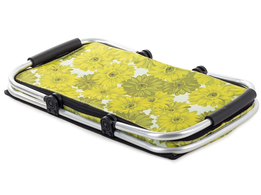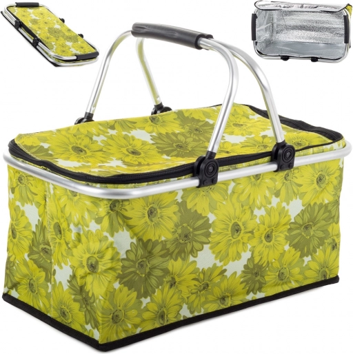 Składany izolowany kosz piknikowy z folią termoizolacyjną, aluminiową ramą i zamkiem błyskawicznym. Lekki, stabilny i kompaktowy. Idealny na piknik, plażę i zakupy przez cały rok.