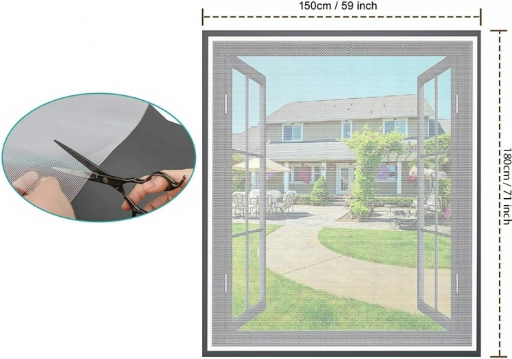 Wymiar 180 × 150 cm można przyciąć nożyczkami dokładnie do rozmiaru okna lub drzwi, aby idealnie dopasować.