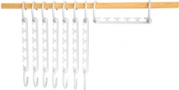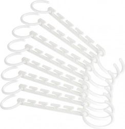 Jest wykonany w białym kolorze, który łatwo wpasowuje się w wnętrze każdej szafy, a jego kompaktowe wymiary zapewniają dyskretne włączenie. Opakowanie zawiera osiem sztuk organizatorów, co umożliwia organizację większej ilości ubrań.