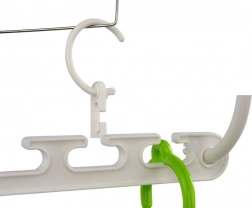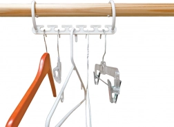 Uniwersalny organizator na wieszaki został zaprojektowany tak, aby optymalizować przestrzeń w szafie i zapobiegać gnieceniu się ubrań. Dzięki temu organizatorowi możesz w przejrzysty sposób rozwieszać ubrania i zapewnić sobie doskonałą organizację.
