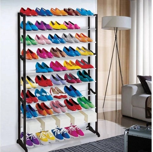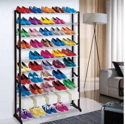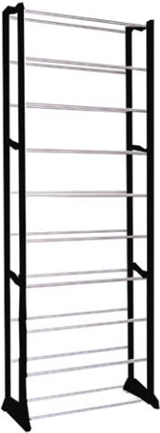 Uporządź swoje obuwie sprytnie i stylowo. Ten wielopoziomowy stojak na buty z 10 półkami pomieści do 50 par, więc bez trudu ogarnie domową kolekcję i obuwie sezonowe. Czarna rama z chromowanymi poprzeczkami wpasuje się w nowoczesne wnętrza, a dzięki kompaktowej głębokości 25 cm zmieści się także w węższych przestrzeniach.