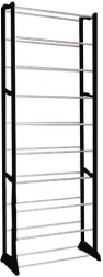 Regulowana liczba poziomów 1–10 i odstęp 14 cm pozwalają dopasować przestrzeń do różnych typów obuwia. Czarna rama z chromowanymi elementami prezentuje się elegancko w każdym wnętrzu.