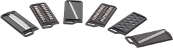 Zestaw zawiera sześć różnych ostrzy do wszystkich rodzajów krojenia, w tym cienkie i grube paski, plastry i wzór falisty.