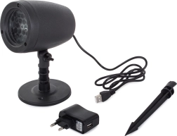 W opakowaniu znajduje się wszystko, czego potrzebujesz do natychmiastowego użycia: projektor LED, wbijany statyw, elementy montażowe oraz oryginalne opakowanie. Wystarczy podłączyć do sieci i cieszyć się świątecznym pokazem świateł.