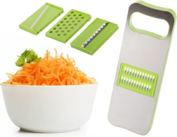 Odkryj praktyczność wielofunkcyjnej tarki, która stanie się niezbędnym pomocnikiem w Twojej kuchni. Dzięki licznym wymiennym ostrzom możesz wybrać idealny sposób krojenia lub tarcia dla różnych produktów.