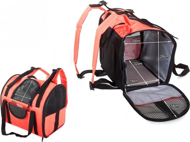 Praktyczna i stylowa torba/plecak transportowy dla małych psów i kotów z lekkiego, ale wytrzymałego materiału. Oferuje wygodne noszenie na plecach i w ręce, doskonałą wentylację dzięki panelom z siatki oraz łatwy dostęp dzięki 3 zamkom. Wyposażona w karabińczyk do przypięcia obroży, wyjmowaną wkładkę i praktyczną kieszeń na drobiazgi.